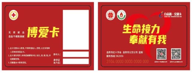 持统一制作的博爱卡(公交IC卡),可免费乘坐自贡主城区常规公交线路