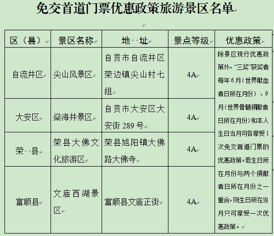 游览自贡市内由政府投资主办的部分国有A级旅游景区时,免交首道门票