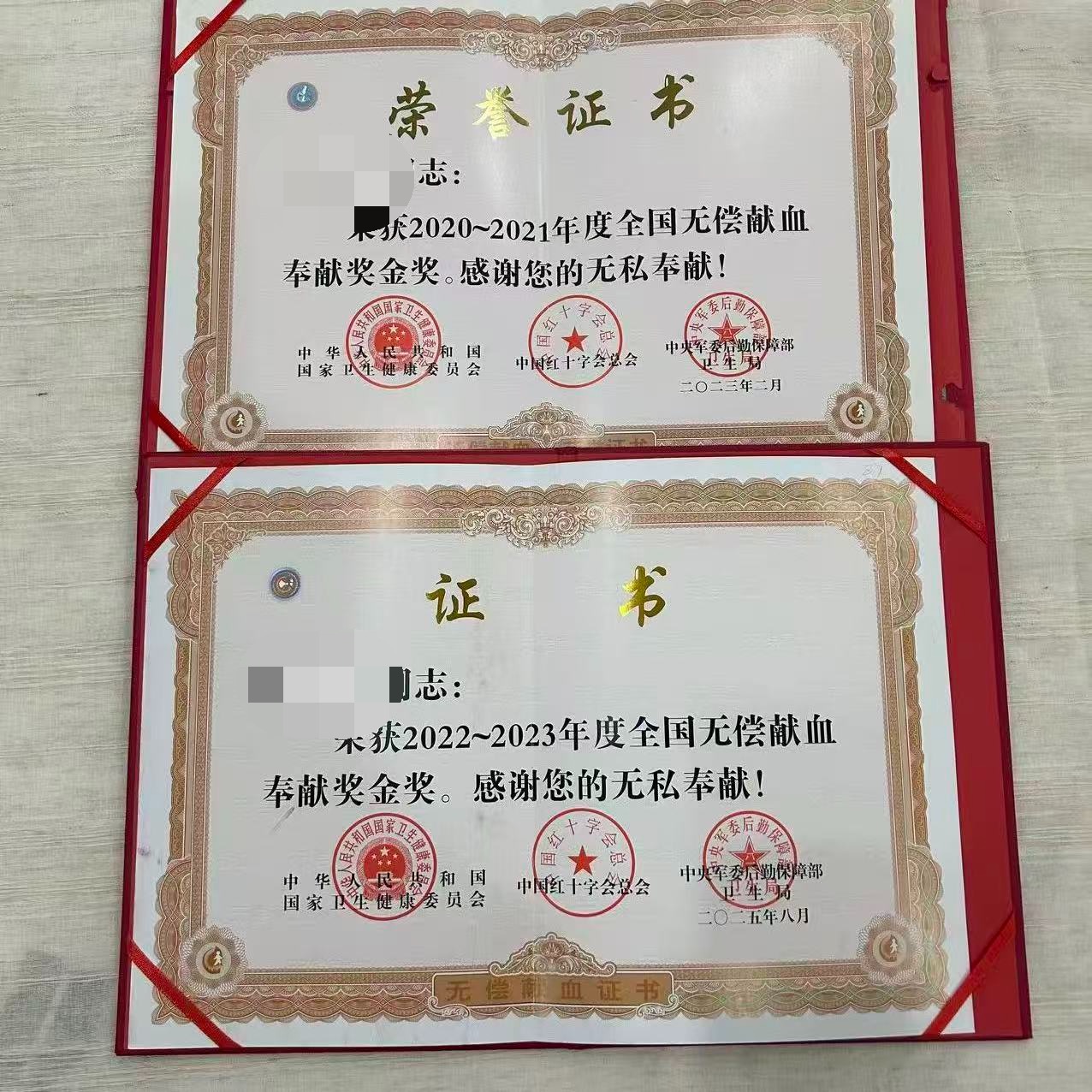 10年过去,谢先生献血109次,累计献血39400毫升,两次成为全国无偿献血金奖的获奖者,持有“博爱卡”等献血证明。多年来,他还以自身行动带领亲人、朋友等多人参与到爱心献血行动中来。