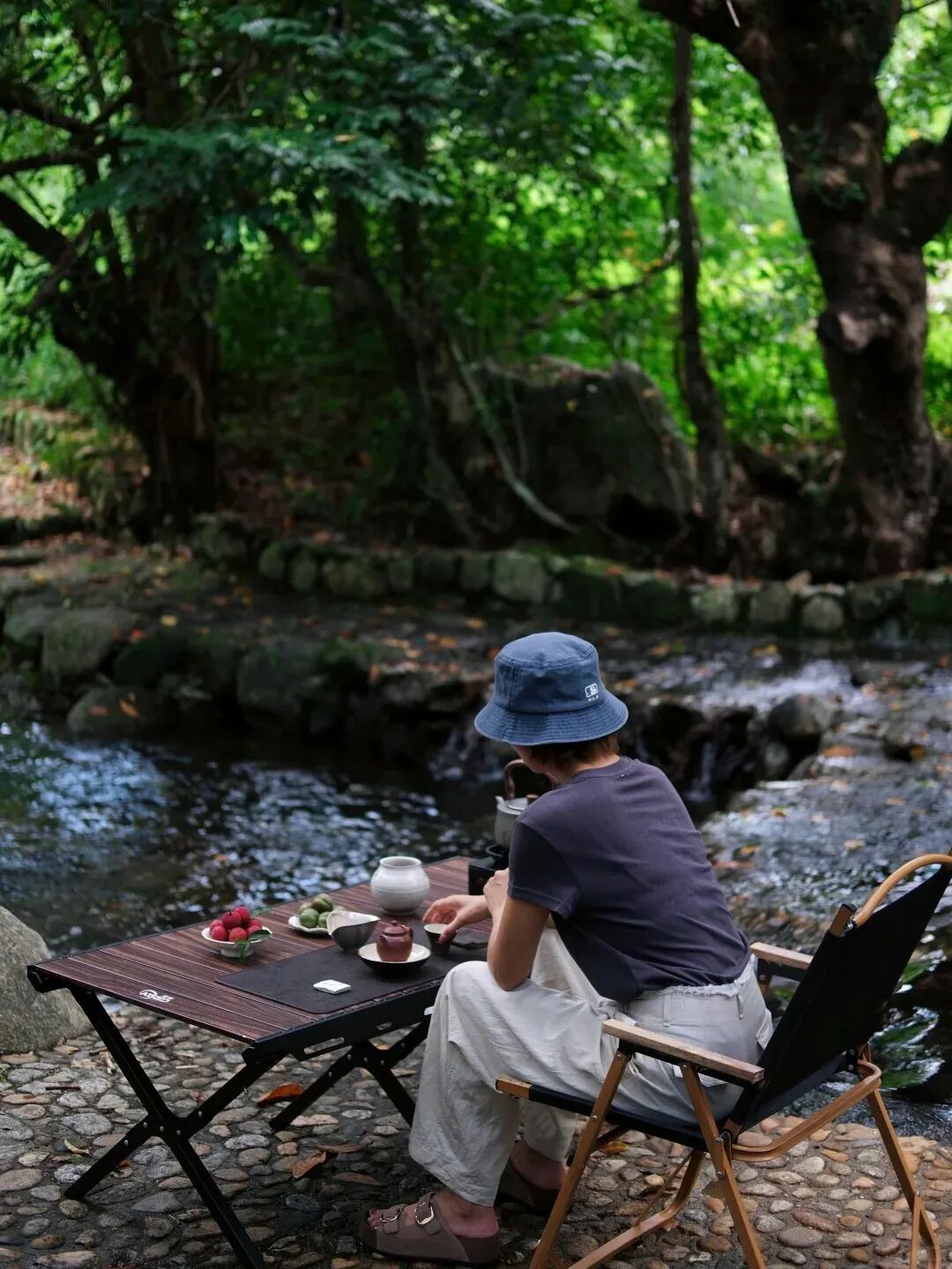 清澈的溪流从营地缓缓流过
