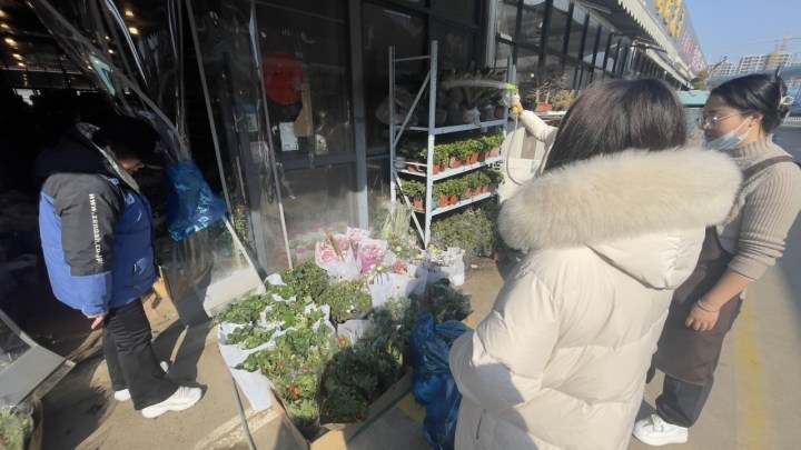 在杨家花卉市场做鲜花批发的吴先生,今天一早已经将数百盆蝴蝶兰完成打包,准备装车发给顾客。“最近鲜花价格还是居高不下。妇女节也是个鲜花消费的大节日,但和情人节相比热度还是有所下降的。”