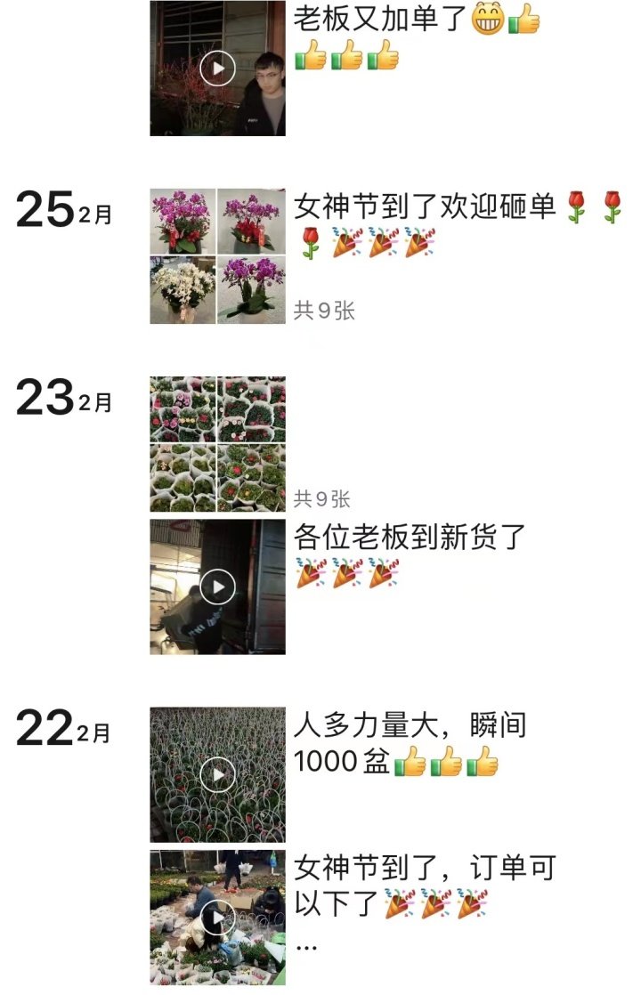潮新闻记者浏览闫女士的朋友圈,每一天的出货量基本都在一千单以上,最多的一天将近两千份,盆栽花束基本都发往湖州、金华等杭州周边地区。收货、整理、包装、发货……2月22日开始,闫女士和7位员工每天从早到晚连轴转,闫女士表示,有企业为女性员工预订了5000份的康乃馨,这也是近期最大的一笔生意。