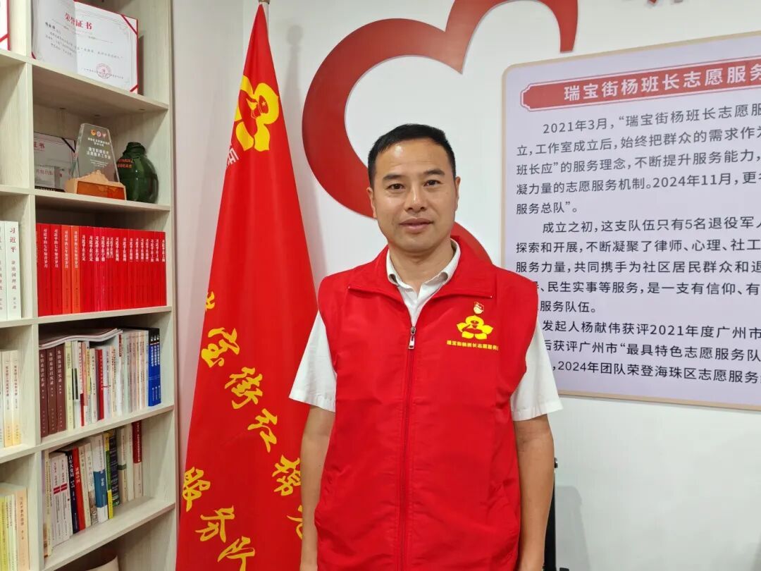作为瑞宝街杨班长志愿服务总队创始人,杨献伟以退役老兵、党员的双重身份,牵头打造广州首个退役老兵志愿工作室。他凝聚千余名志愿者力量,深耕纠纷调解、家电义修、心理关怀、红色宣讲等服务,累计开展活动500余场,服务超10万人次,个人筹资及动员捐款40余万元,用坚守与担当守护社区万家灯火。
